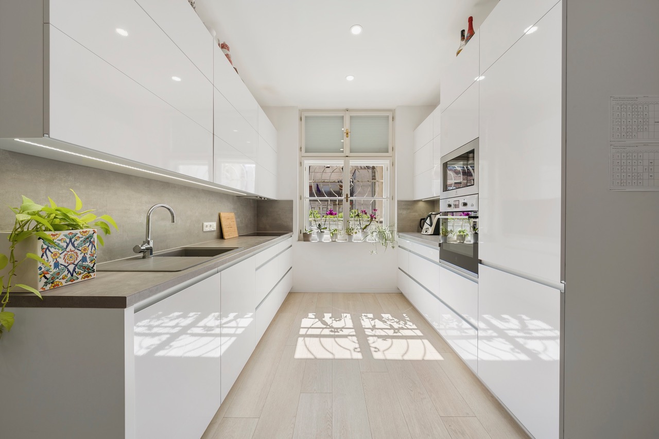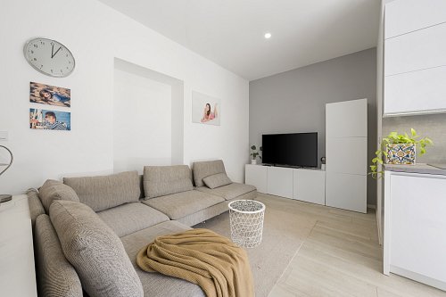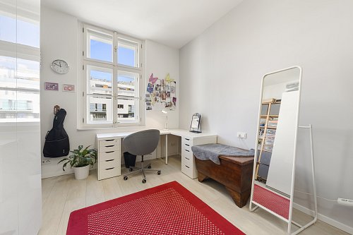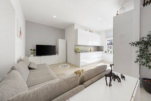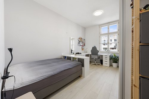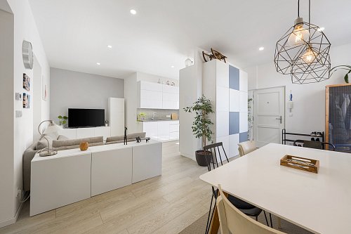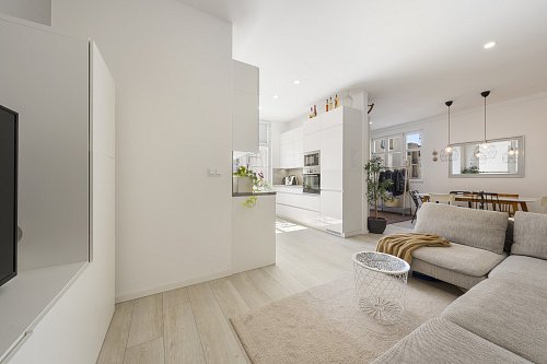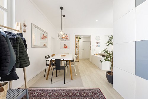 Byt prošel kompletní a velmi citlivou rekonstrukcí s důrazem na kvalitu provedení i zachování původního charakteru. Dominantou jsou vyšší stropy, které dodávají prostoru vzdušnost a eleganci. Součástí rekonstrukce byly nové rozvody elektřiny, vody i odpadu, topení, nové podlahové krytiny, omítky i okna – zkrátka vše bylo vybudováno zcela od základu.