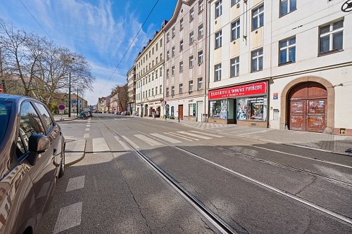• přímý průchod domu do ulice Sokolovská s tramvajovou zastávkou