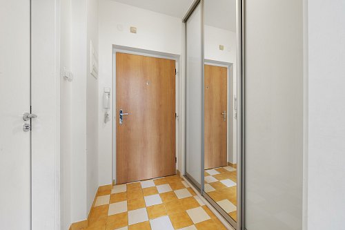 Byt vás hned při vstupu uvítá prostornou předsíní (3,82 m²), kde je umístěna velká vestavná skříň – ideální úložný prostor pro oblečení, obuv i domácí potřeby.