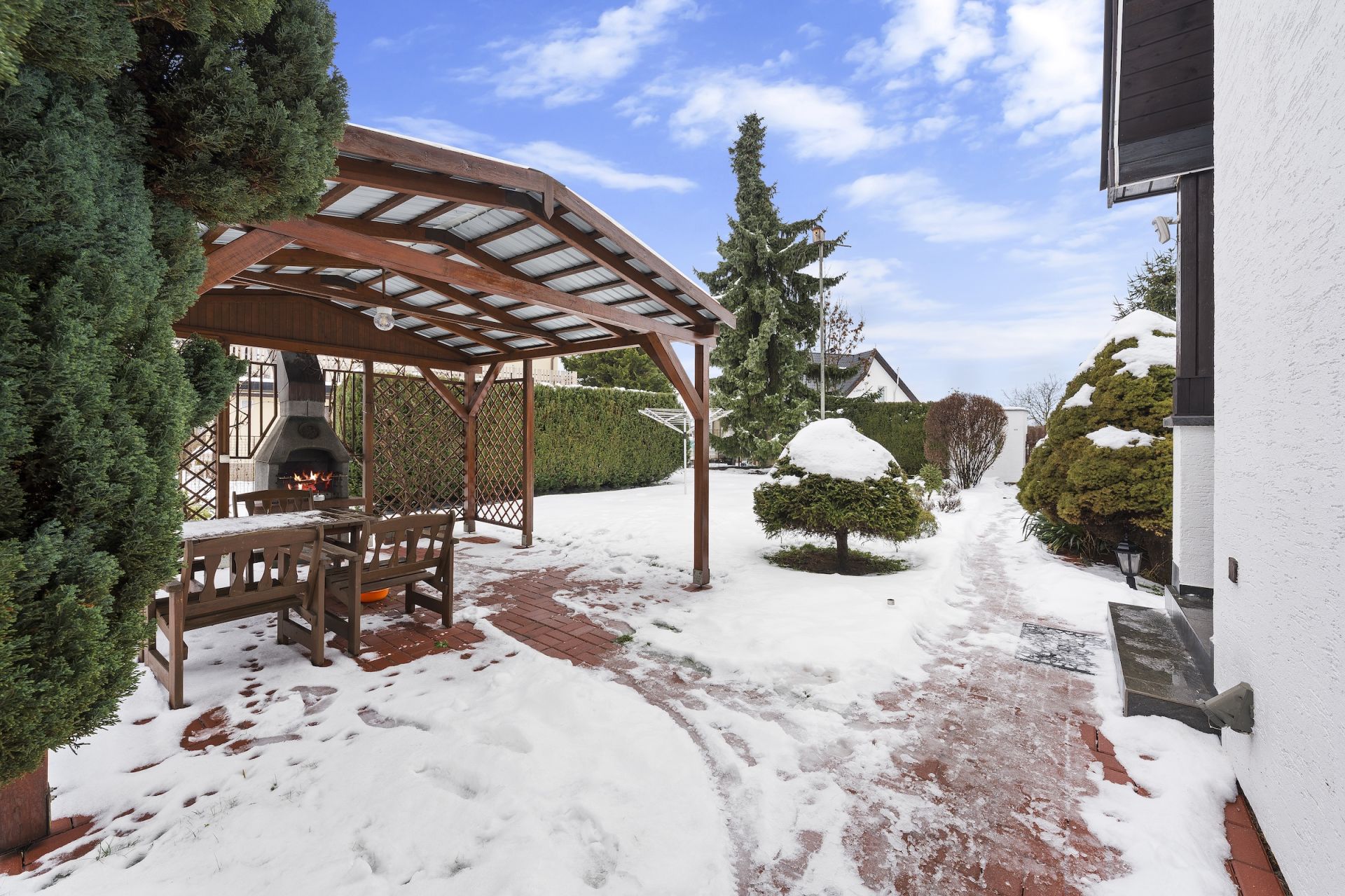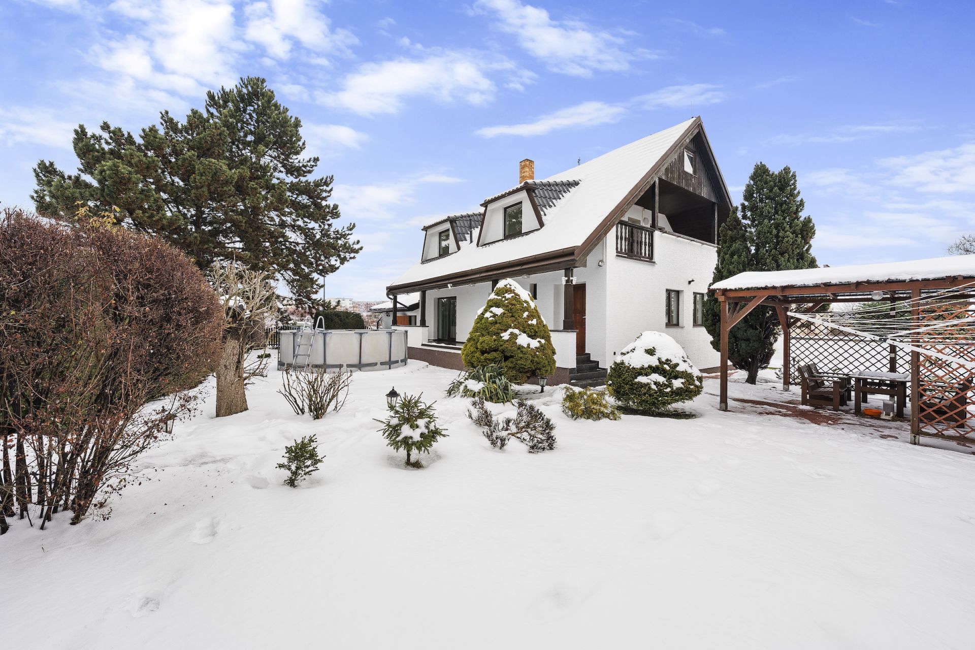 Na pozemku se nachází pergola pro letní posezení a také dostatek místa pro parkování dalších vozidel, což výrazně zvyšuje komfort každodenního užívání.