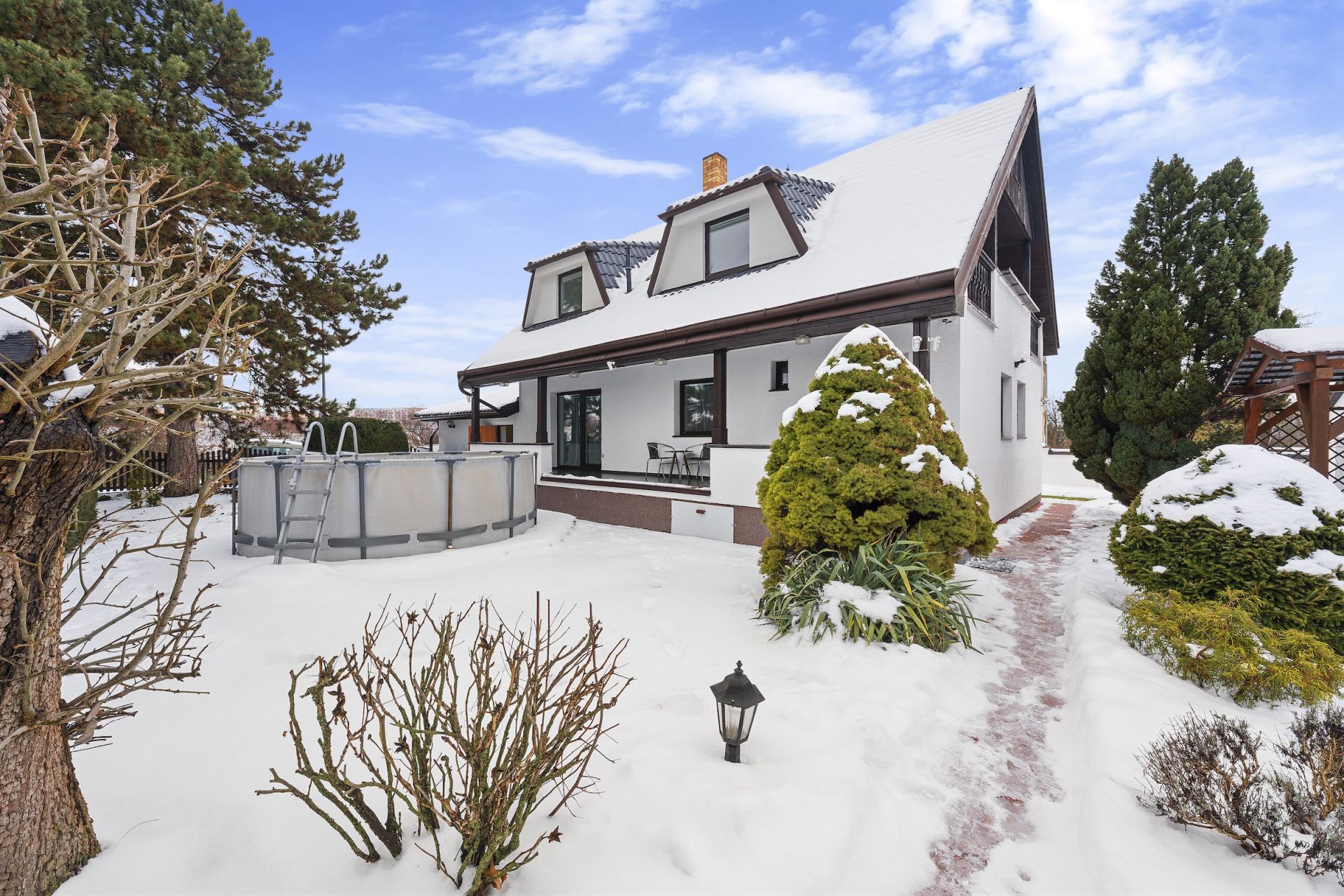 Nemovitost je obklopena udržovanou zahradou, která poskytuje příjemné soukromí a prostor pro relaxaci i rodinné aktivity.